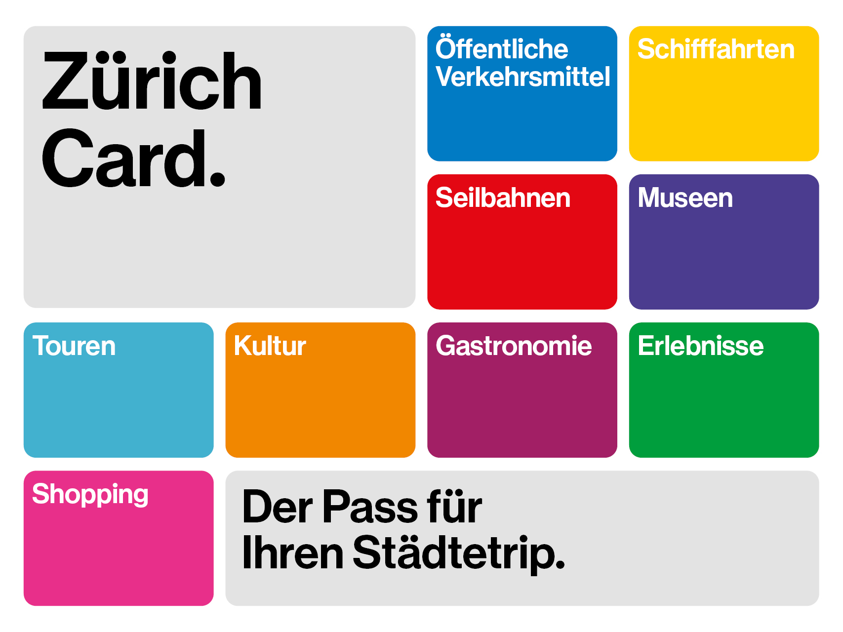 Die Zurich Card ist der praktische Stadtpass für alle, die Zürich entspannt und vielseitig erleben möchten. Gültig für 24 oder 72 Stunden, inklusive: